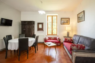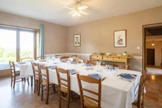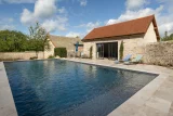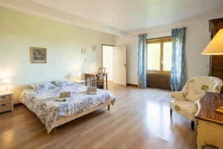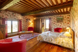 Gîte de bon confort. Ultra spacieux. Pièces aux dimensions nobles. Chaleureux cachet campagnard mixant tradition et modernité. Vaste terrasse exposée plein Sud dans un agréable jardin avec vue dégagée sur la campagne environnante. Accès à la piscine avec jardin (clos de murs) et tennis privé.